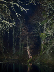 In turn, Nicolas Hermann follows this rabbit to Beaugency, where, thanks to the Ardelim residency of 2023-2024, he creates Do Dreams Have Titles?, an in-situ installation presented in the Saint-Étienne church of Beaugency. Visitors enter darkness, opening themselves to the invisible, attentive to unnoticed strangeness lurking in shadows, transforming into characters from a Gothic novel—like a wandering Melmoth. Occasionally, they perceive “glitches,” lapses in perception, or pareidolia, drawing inspiration from vague or ambiguous images that lead them into dreams. In this other world, time is suspended, abolished, yet paradoxically expressed through absence: as Peter Kubelka asserts, “Cinema expresses itself between the images,” a philosophy permeating Hermann’s work.
