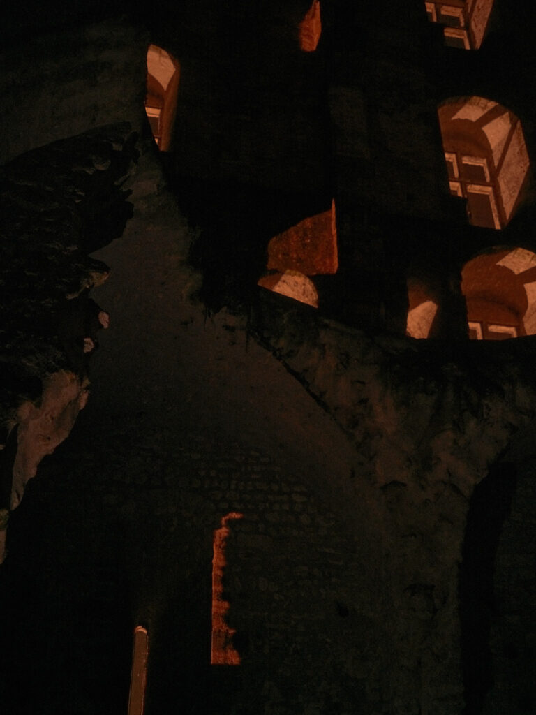 Nicolas Hermann, à son tour, suit ce lapin jusqu’à Beaugency, où, grâce à la résidence Ardelim 2023-2024, il crée Les rêves ont-ils des titres ?, une installation in situ présentée à l’église Saint-Étienne de Beaugency. Le visiteur y pénètre dans l’obscurité et s’ouvre à l’invisible, prêtant attention à l’inaperçu et à l’étrangeté tapie dans l’ombre, se métamorphosant en personnage de roman gothique, tel un Melmoth errant. Parfois, il perçoit des « glitches », des défaillances de la perception, des paréidolies, et trouve l’inspiration dans des images vagues ou ambiguës qui l’entraînent dans les rêves. Dans cet autre monde, le temps est suspendu, aboli, mais trouve paradoxalement son expression dans cette absence : comme l’affirme Peter Kubelka, « c’est entre les images que le cinéma s’exprime », et cette philosophie infuse l’œuvre de Nicolas Hermann.